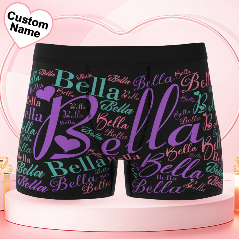 Custom Name Men's Underwear With Heart Personalized Men's Boxer Briefs