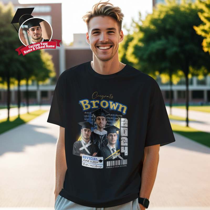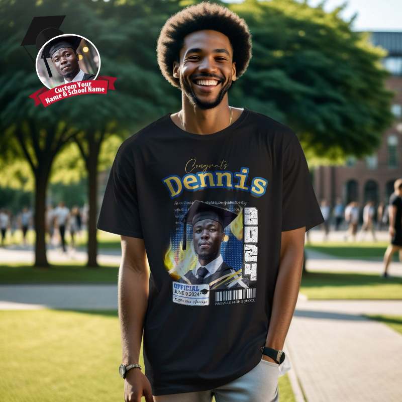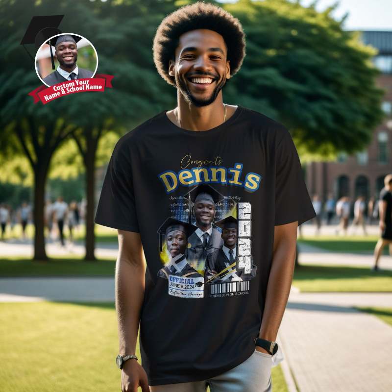 Custom Shirt Personalized Photo Vintage T-shirt Custom 2024 Graduation T-Shirt with Name