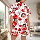 Custom Short Sleeve Pajama Bright Pink Base with 3D Red Hearts and Lips Prints Valentine's Day Gift for Her