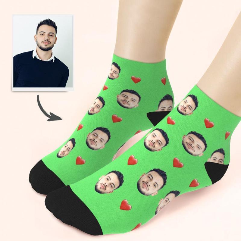 Custom Face And Heart On Quarter Length Socks
