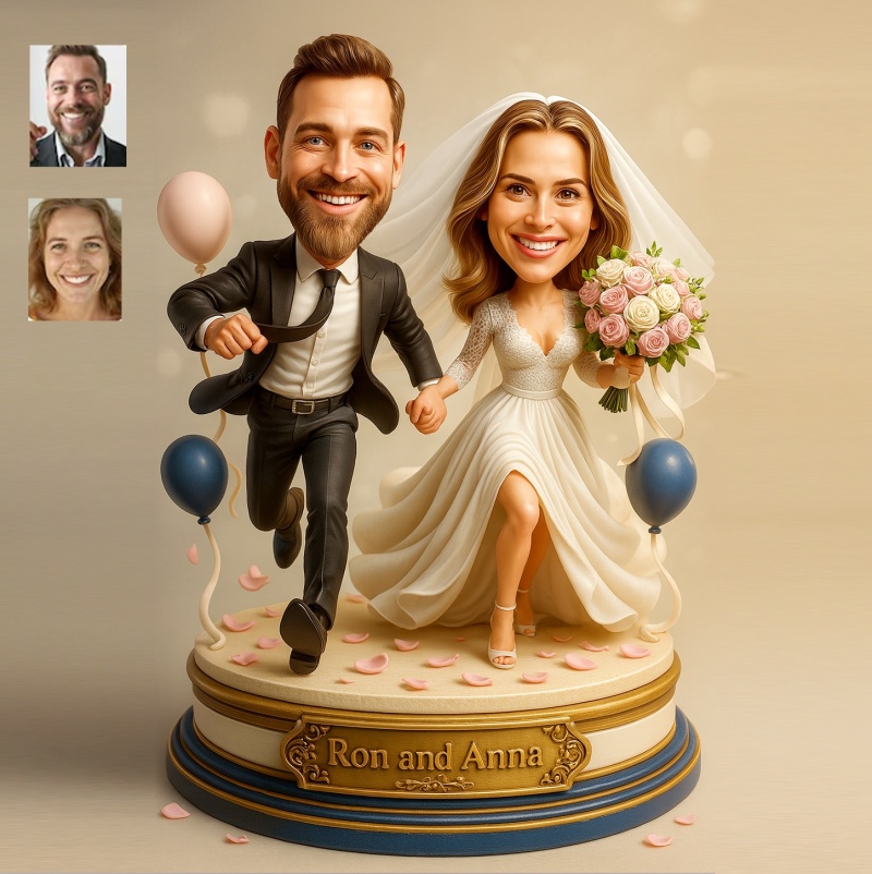 Custom Wedding Couple Cartoon Acrylic Portrait Plaque Gift 2D Look 3D Pop