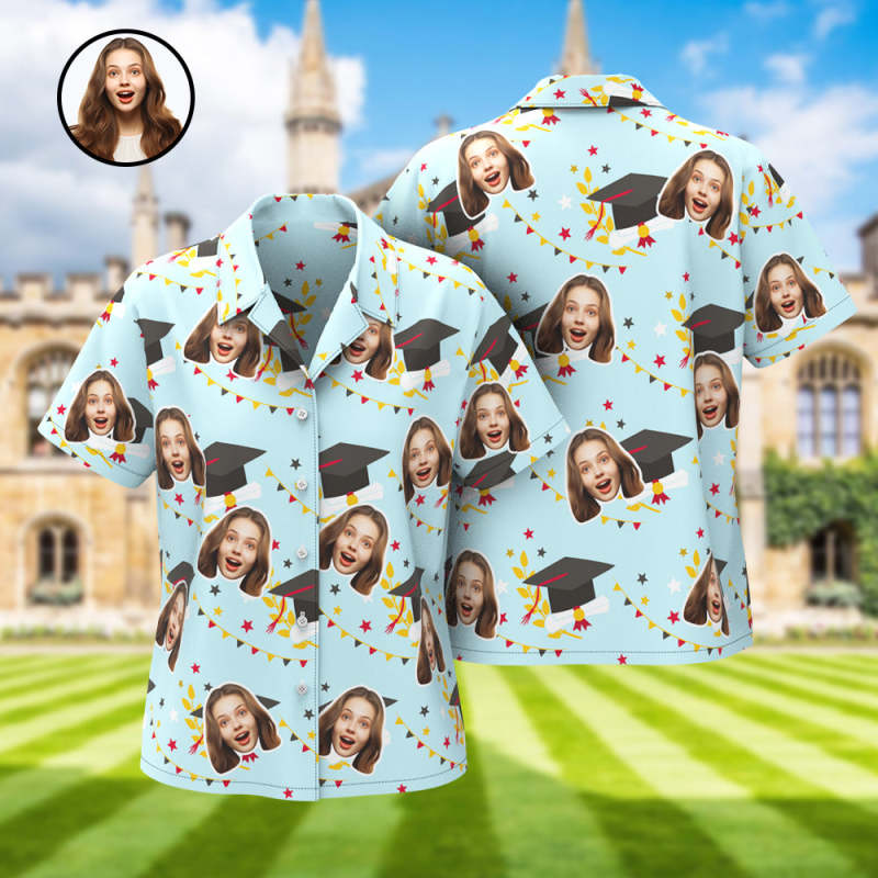 Custom Women's Hawaiian Shirt with Face and Name Personalized Graduation Party Aloha Shirts