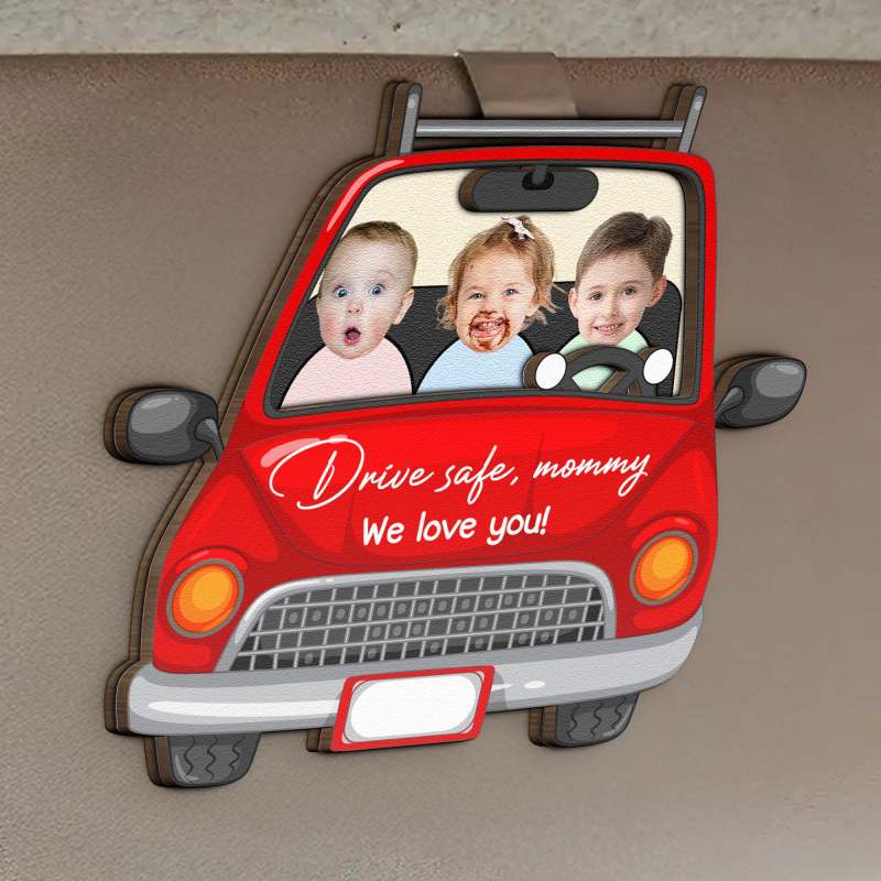 Drive Safe Daddy We Love You - Personalised Wooden Photo Car Visor Clip