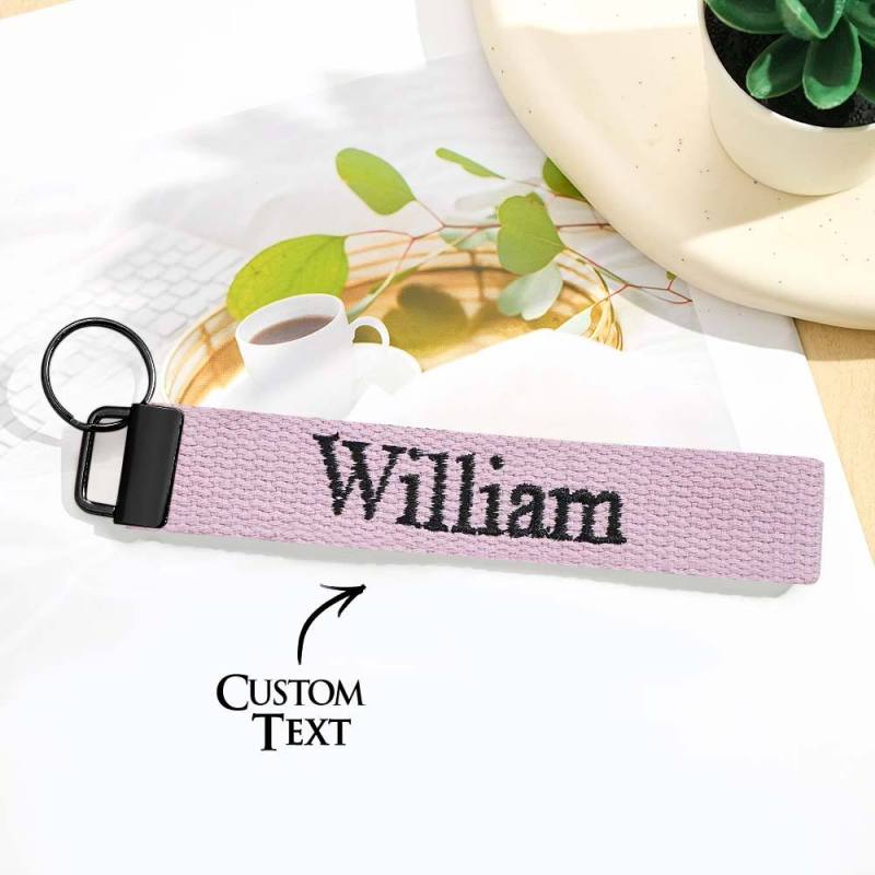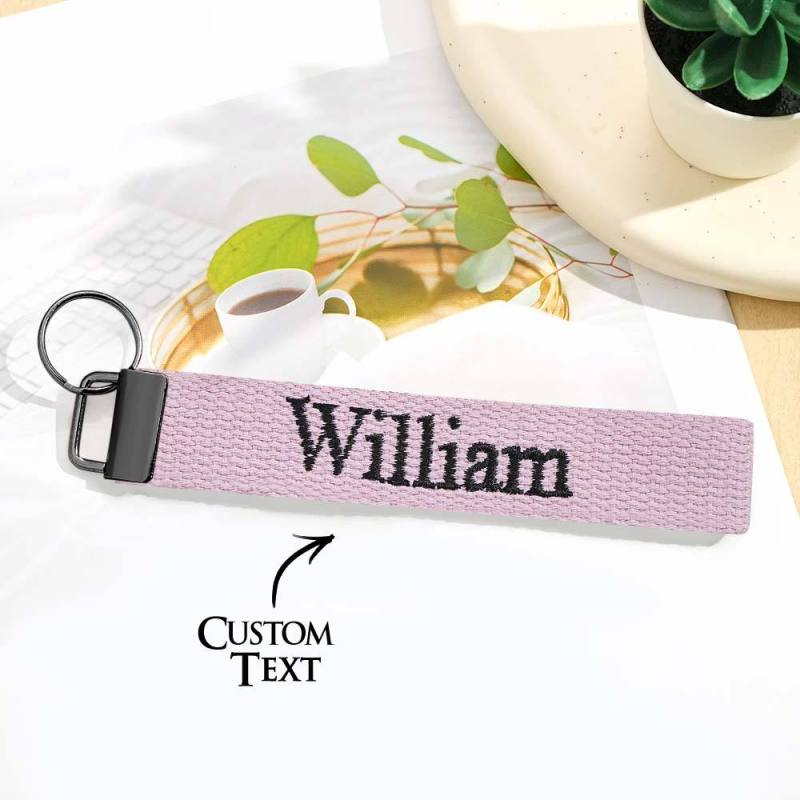Father's Day Gifts Custom Embroidered Name Keychain Strap Personalised Key Fob Keychain for Dad