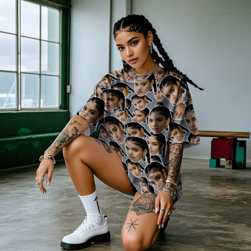 Personalised Mash Face Photo Vintage T-shirts Valentine's Day Theme Black T-shirt for Lover