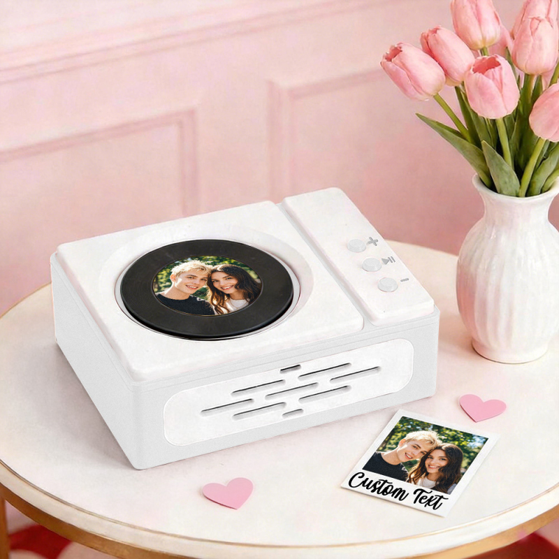 Personalized Mini Record Player with Custom Photo & Song - Unique Music Christmas Gift