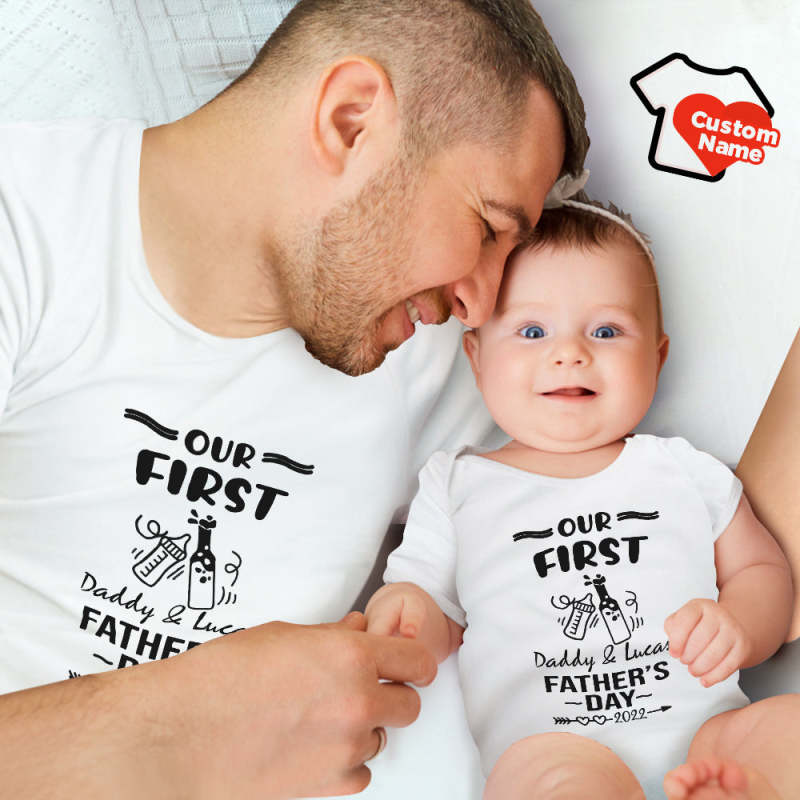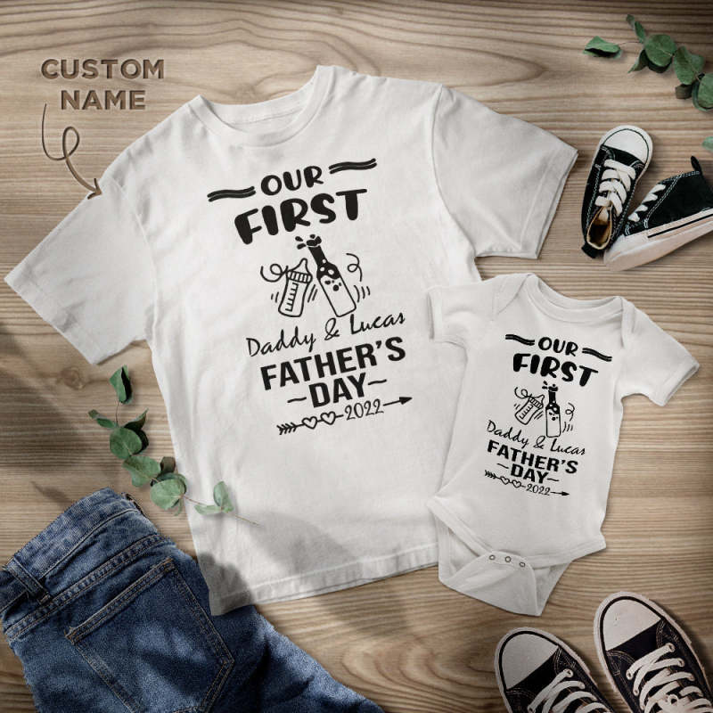 Personalised Name Shirt Custom Daddy And Baby Matching Outfits Our First Father's Day Gifts Beer