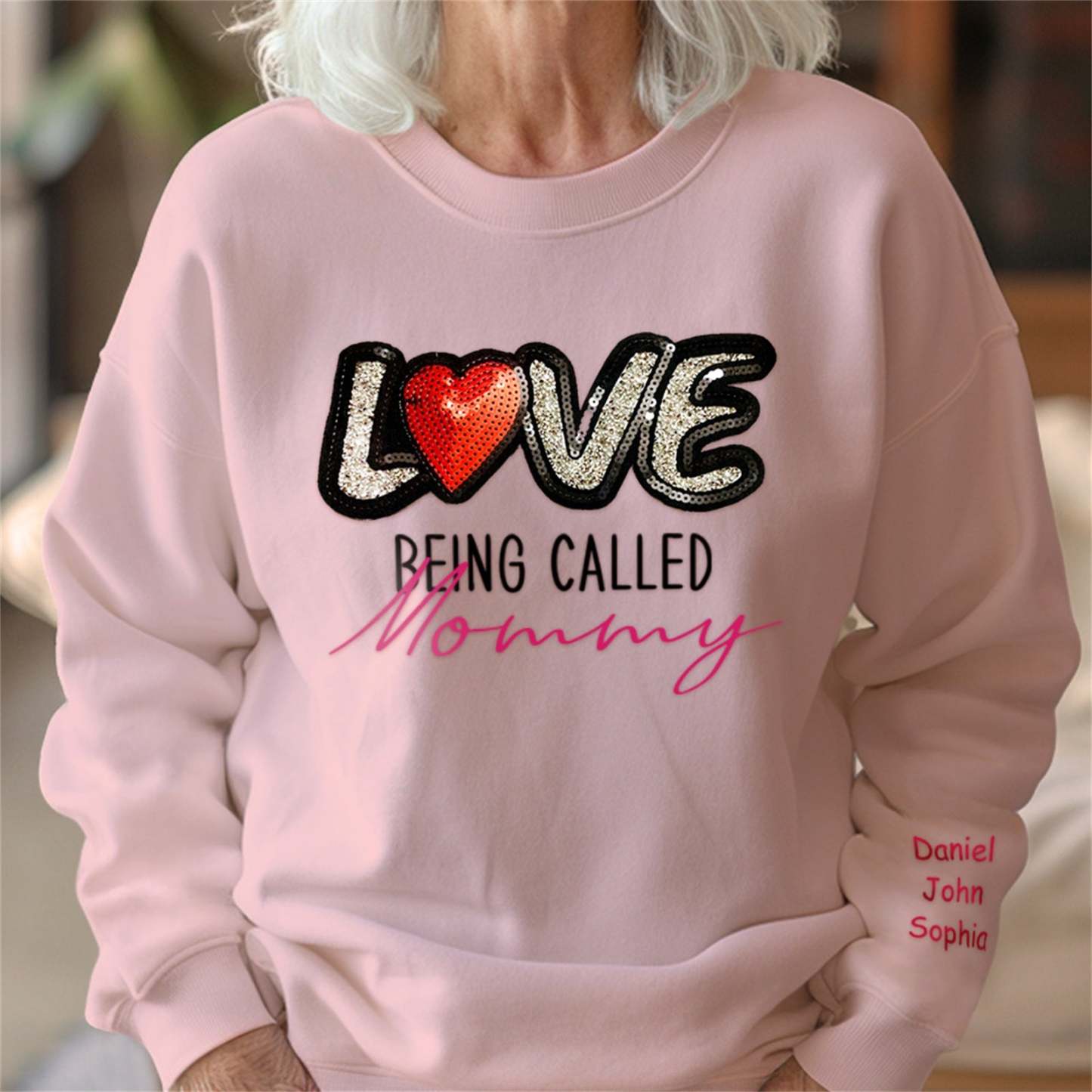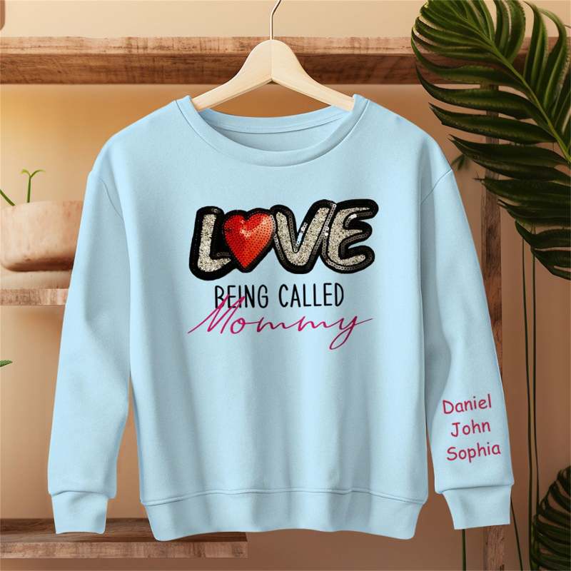 Personalized Names Sweatshirt Custom Sweatshirt with LOVE Sequins Mother's Day Gift