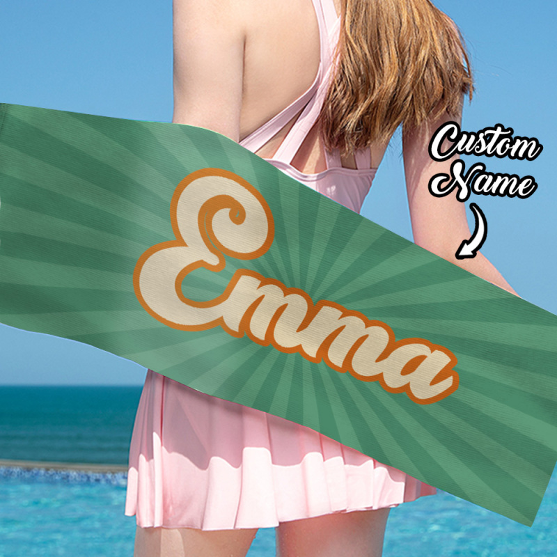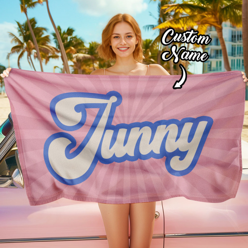 RETRO Style Personalized Beach Towel Personalized Name Bath Towel Custom Beach Towel With Name Outside Birthday Vacation Gift