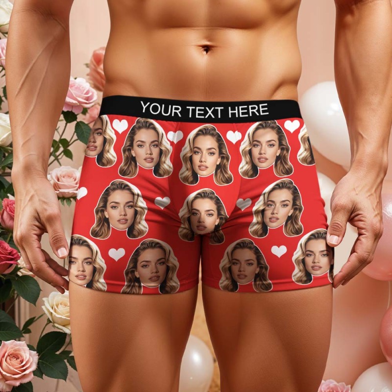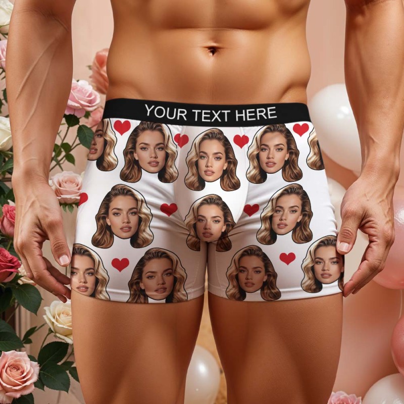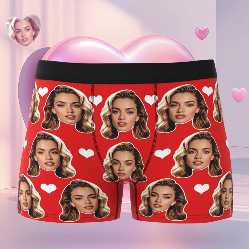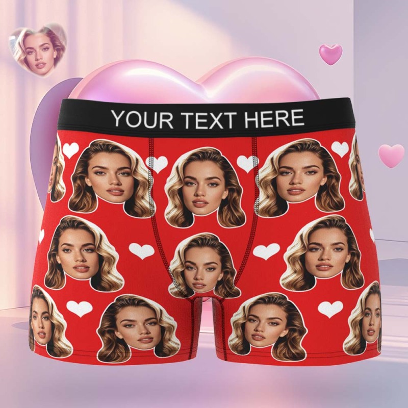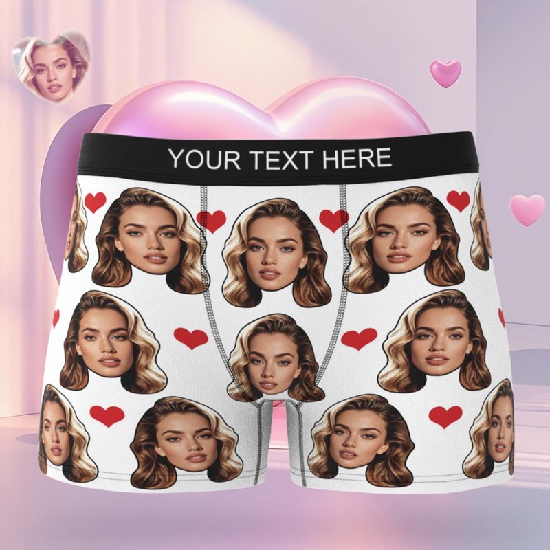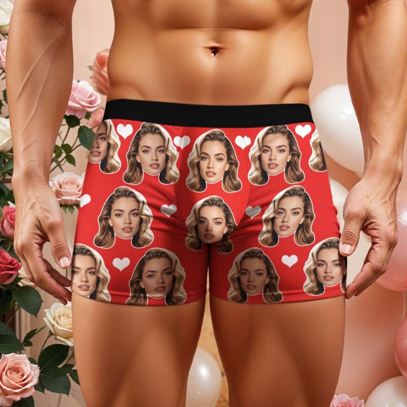 Valentine's Gift For Men Custom Big Face Heart Boxer Shorts