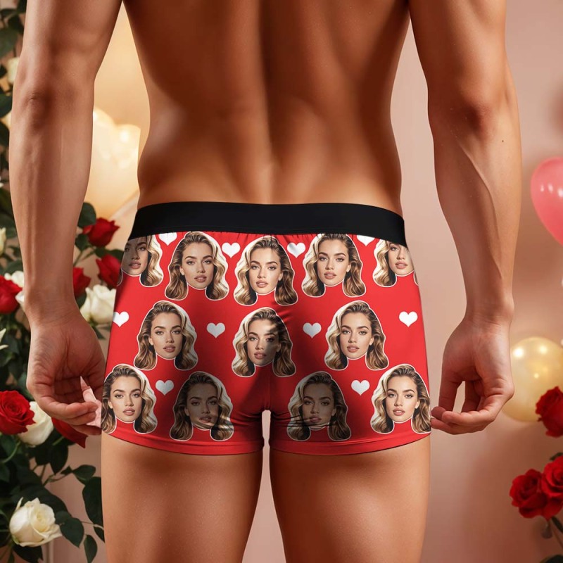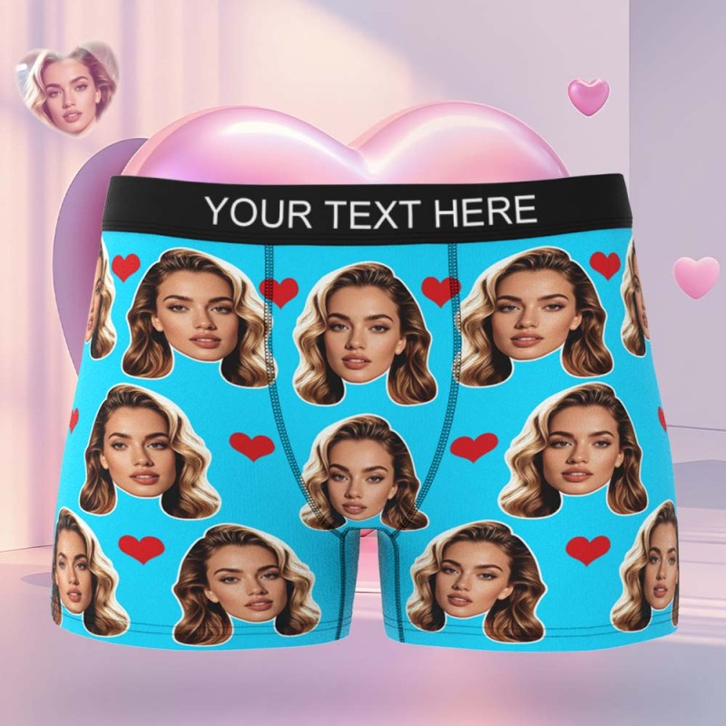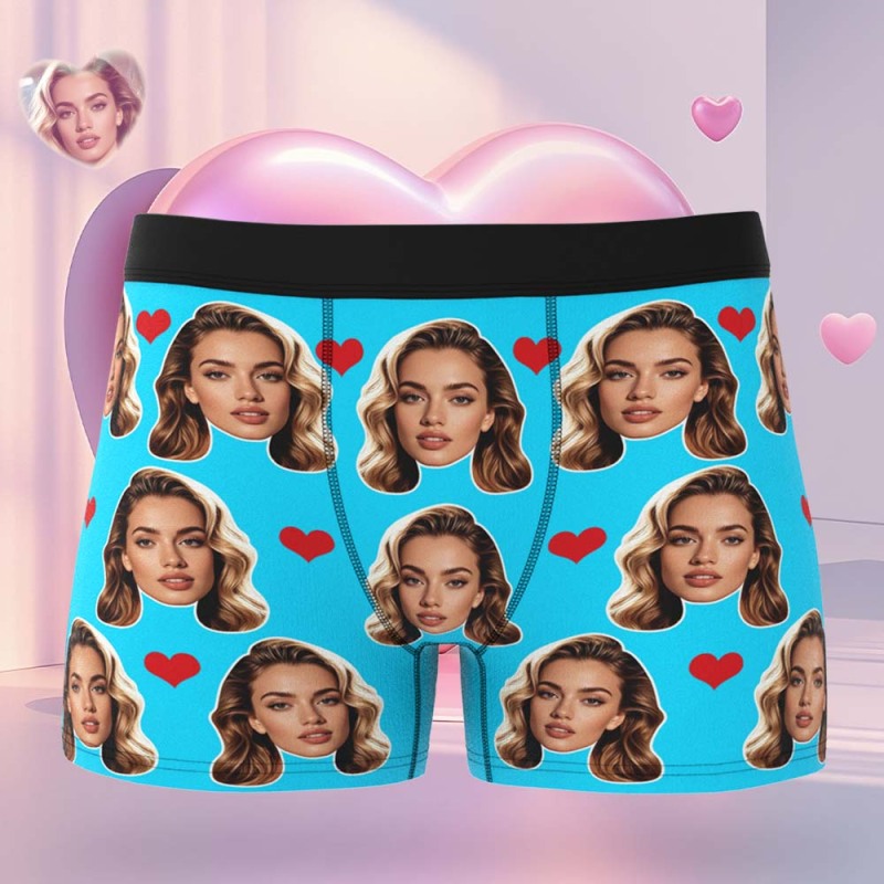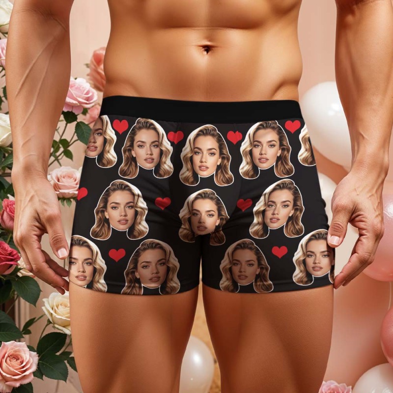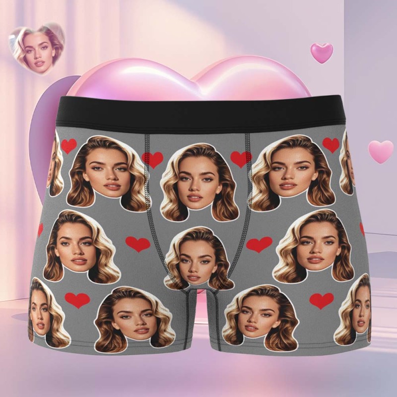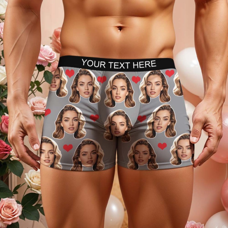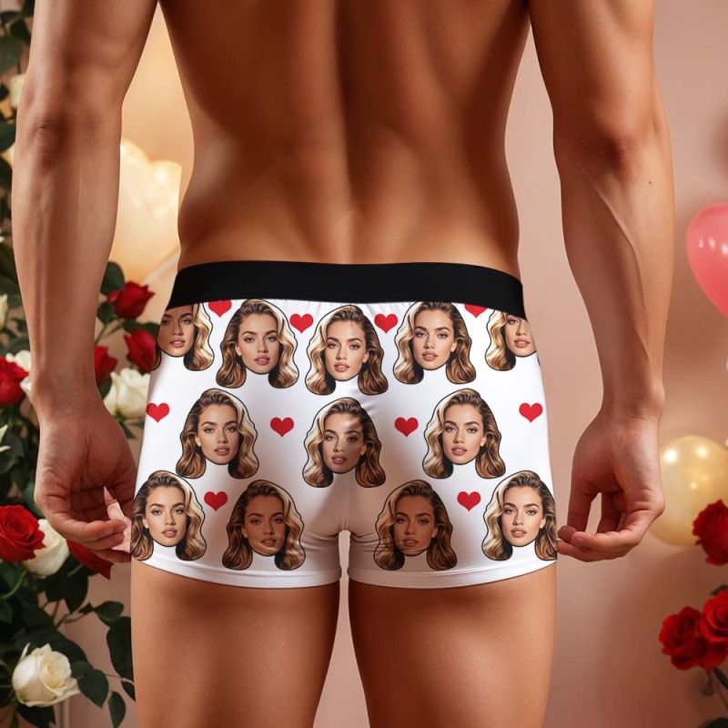 Valentine's Gift For Men Custom Big Face Heart Boxer Shorts