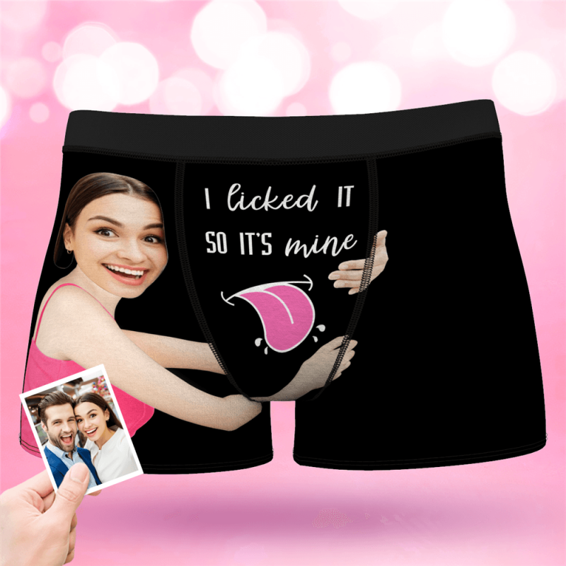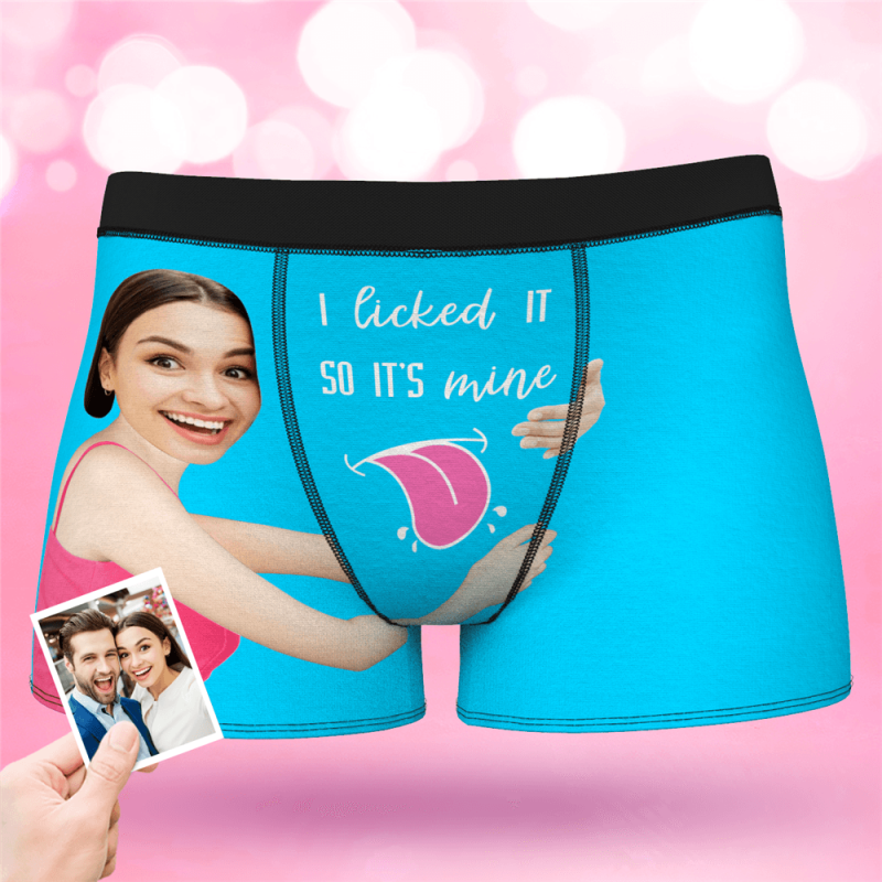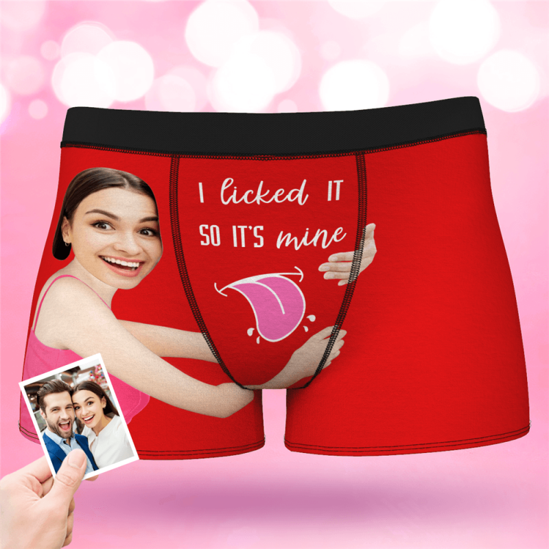 Valentine's Day Men's Custom Face On Boxer Shorts I licked ITSO IT'S mine