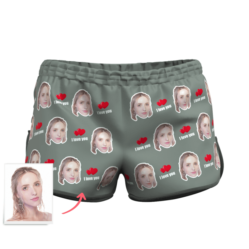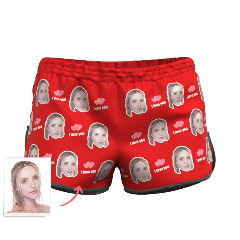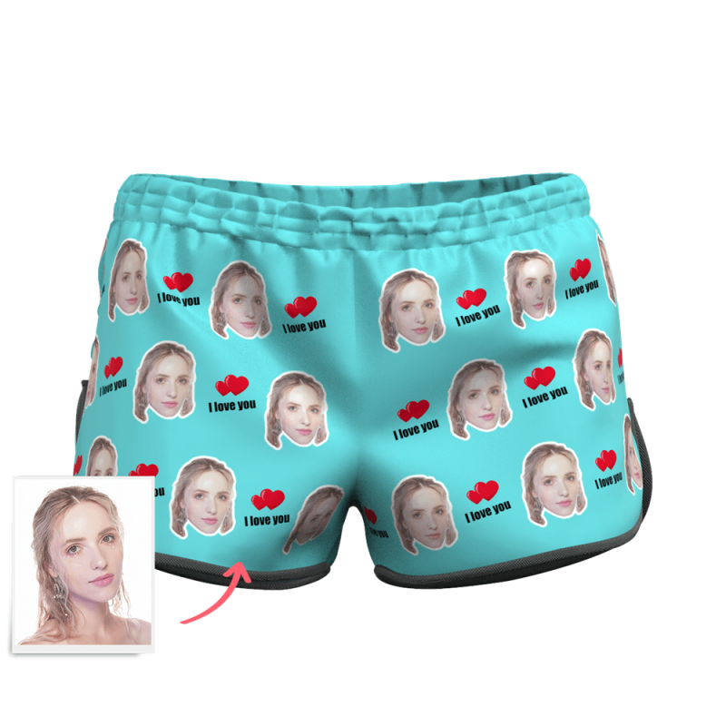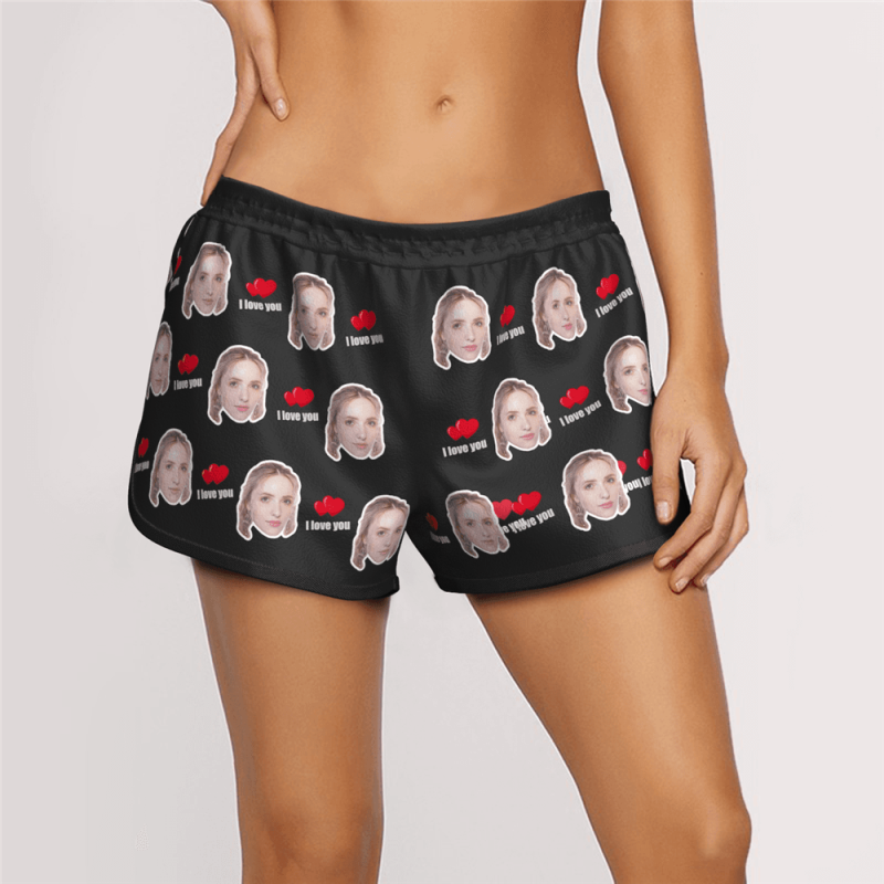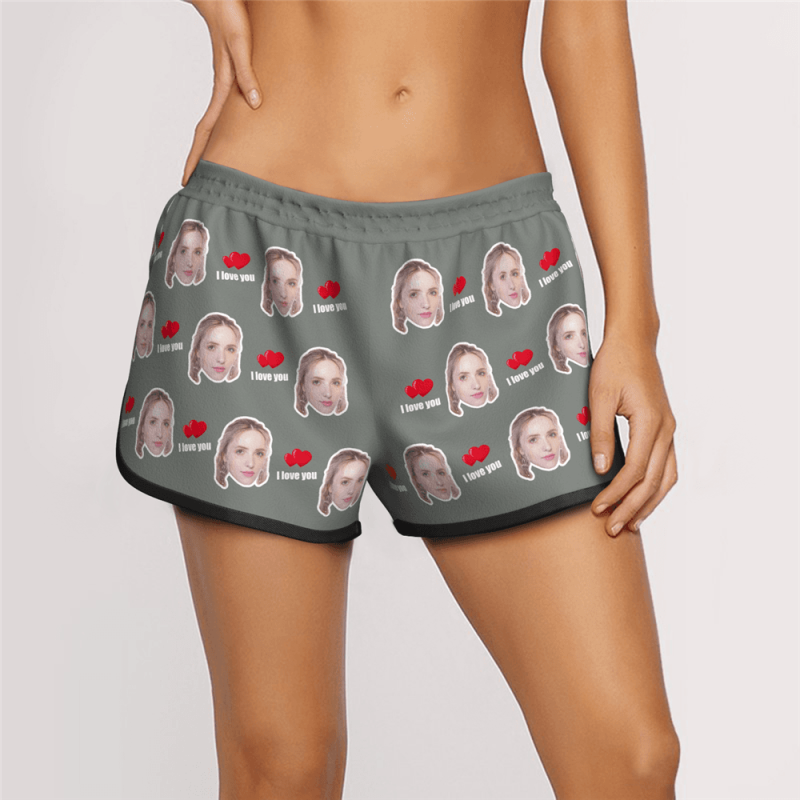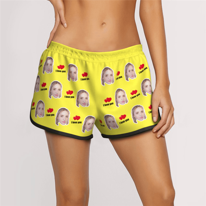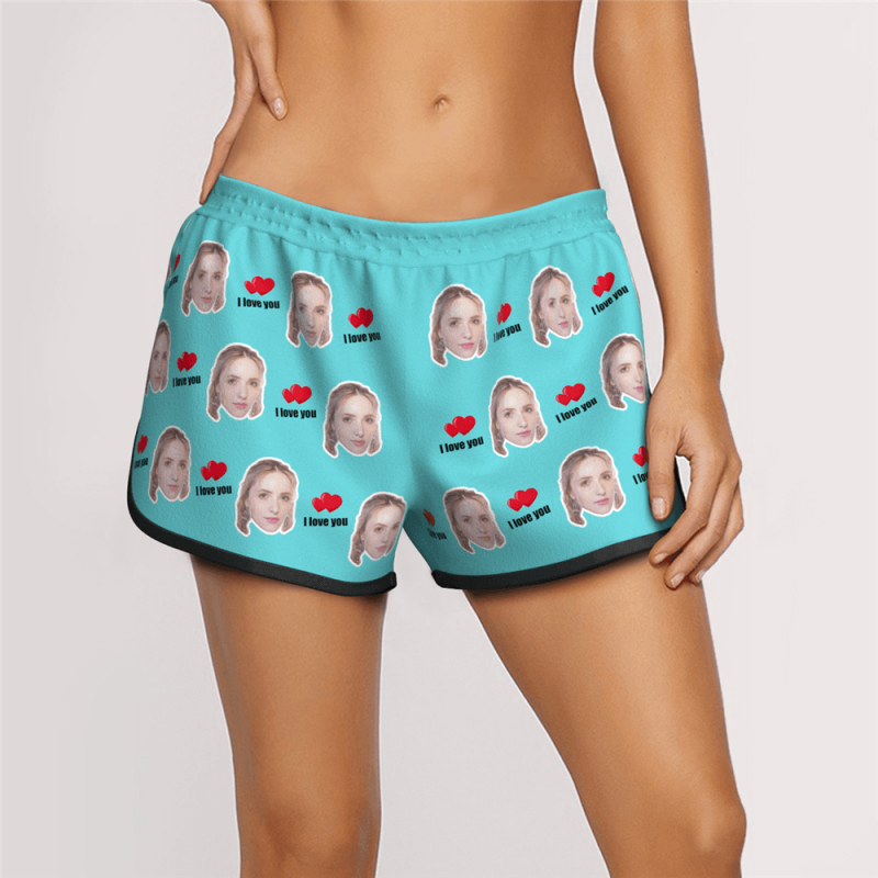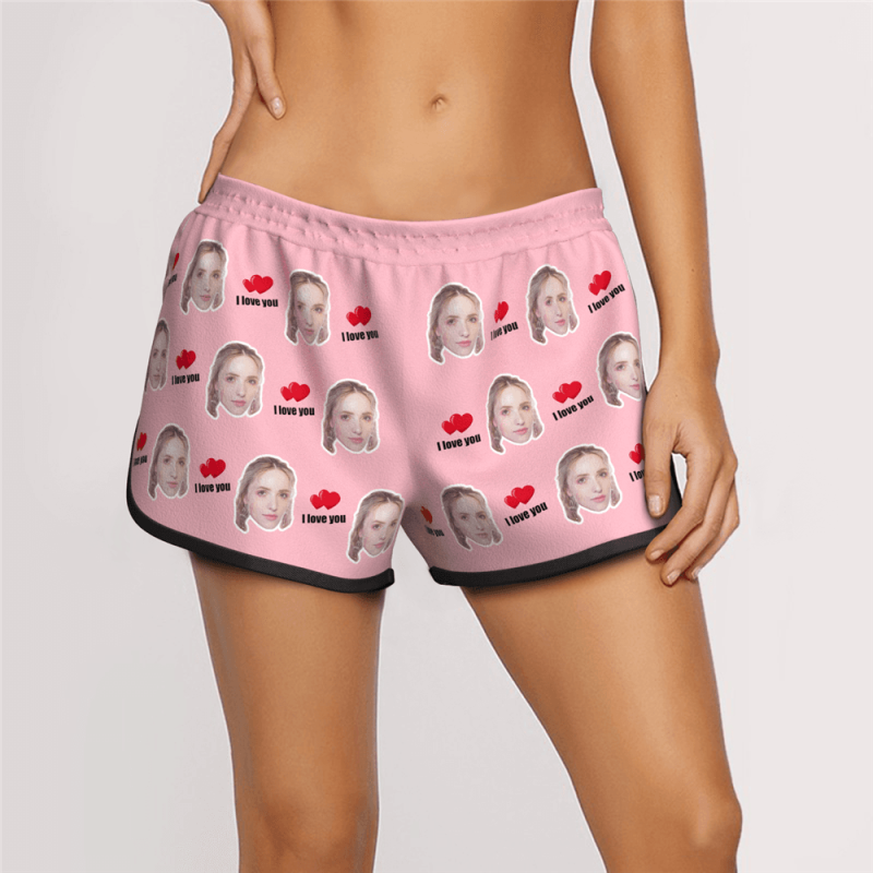 Women's Custom Face Elastic Beach Short Pants - I Love You