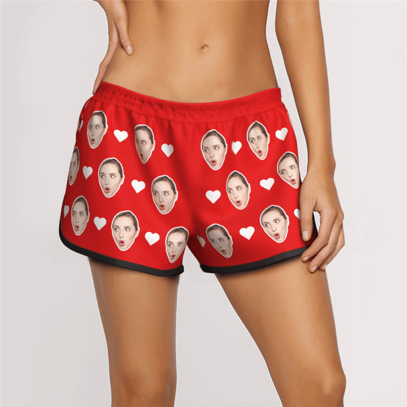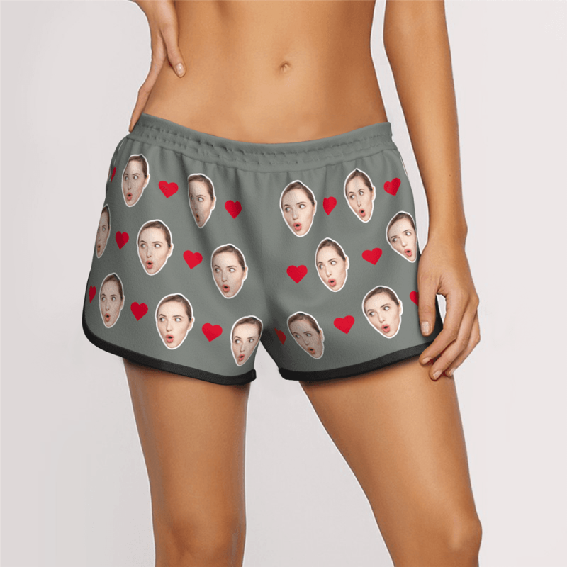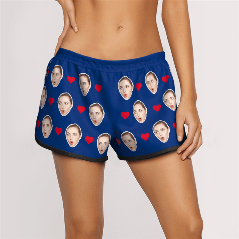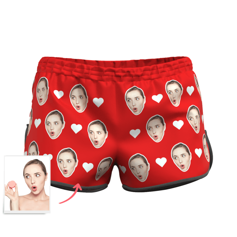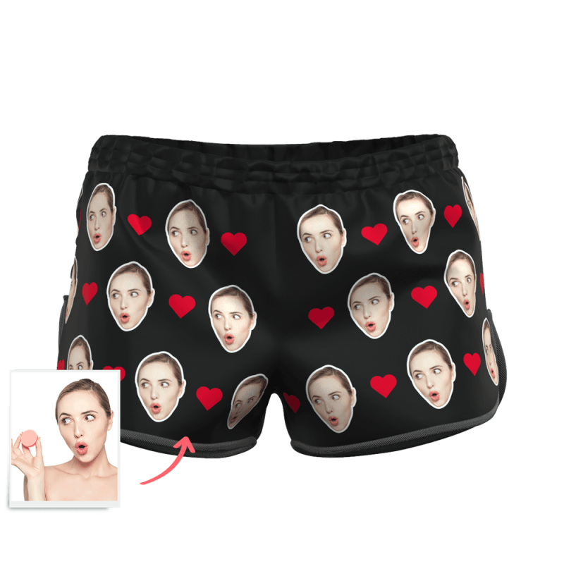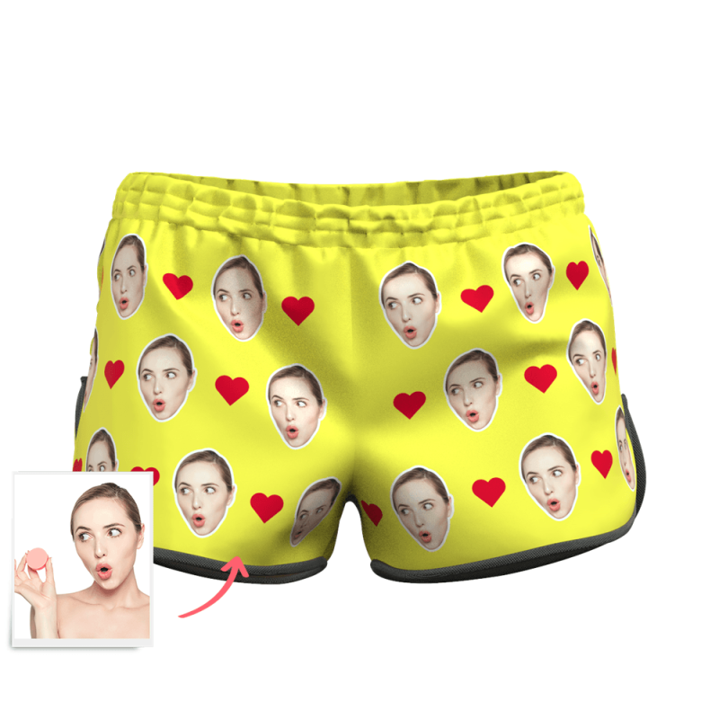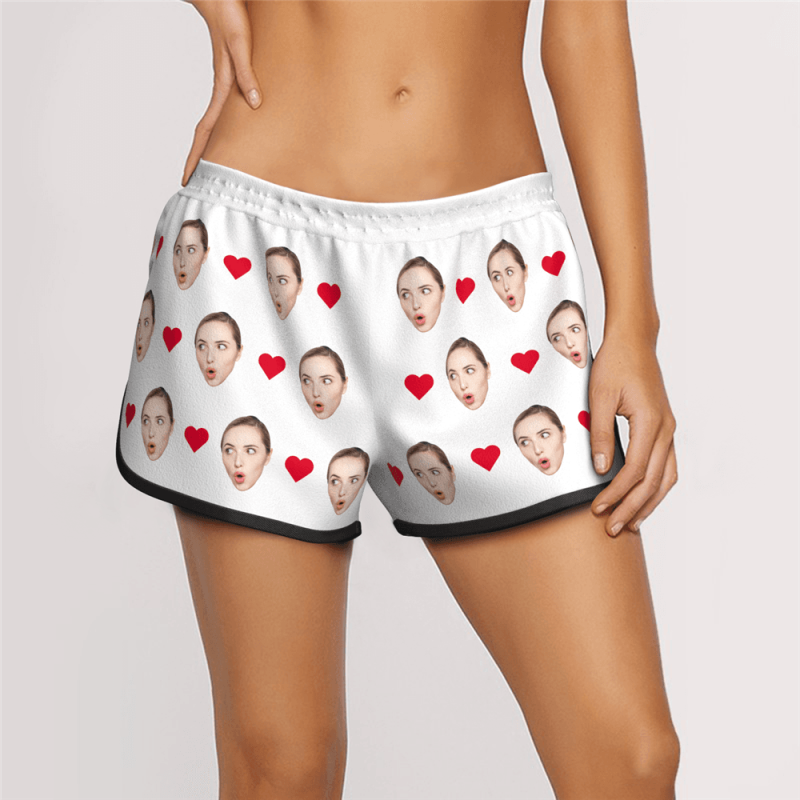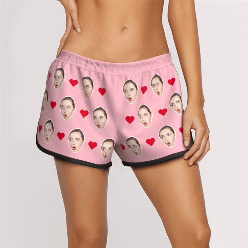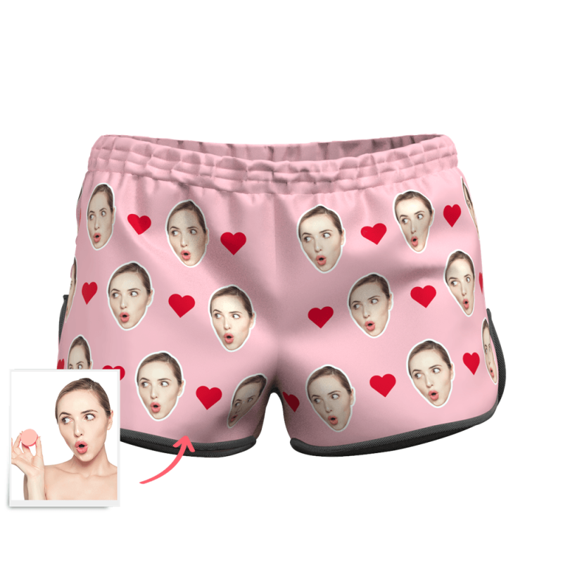Women's Custom Heart Face Elastic Beach Short Pants