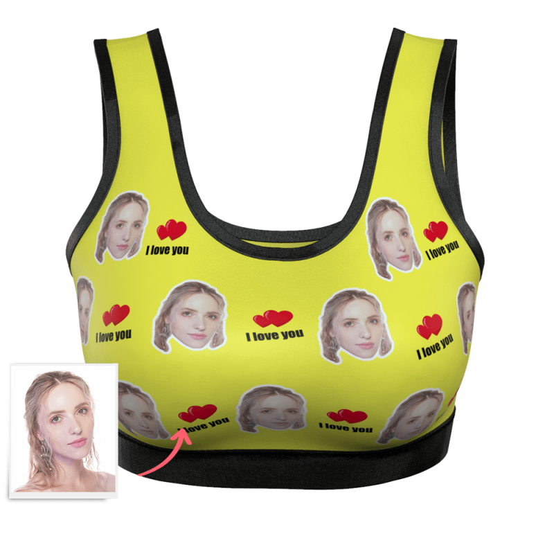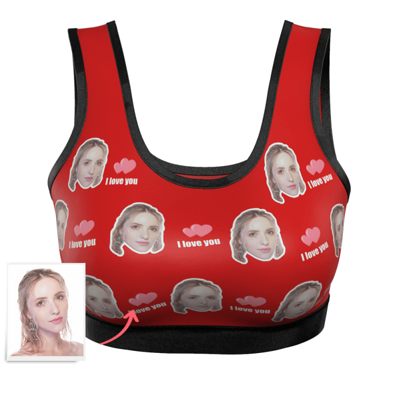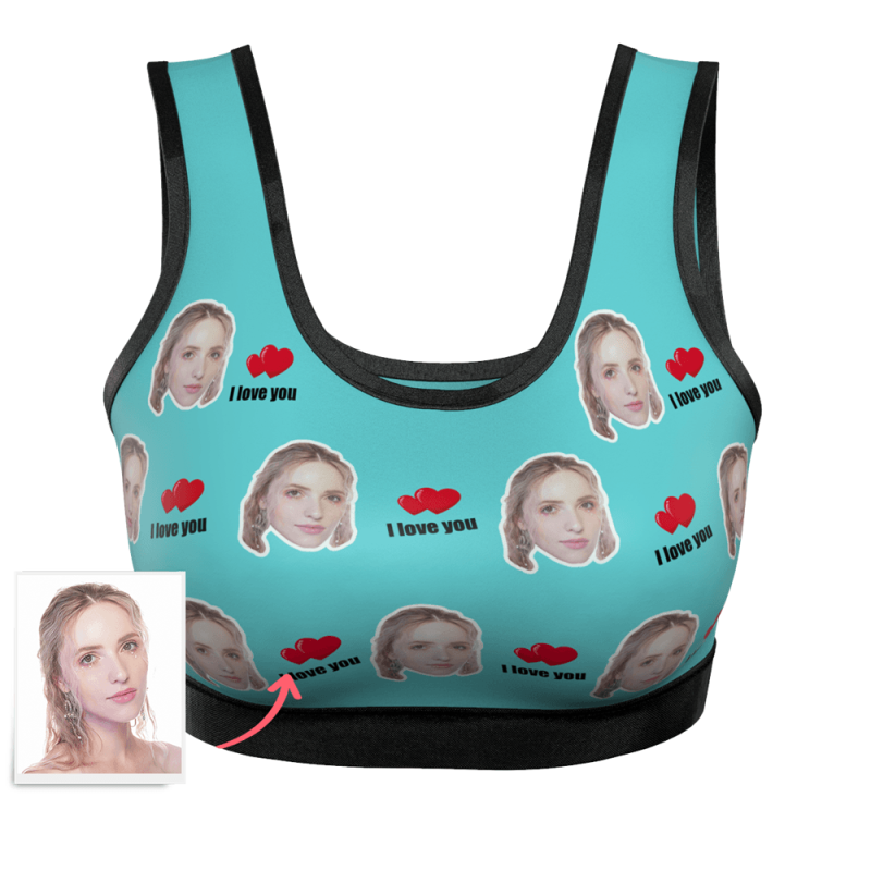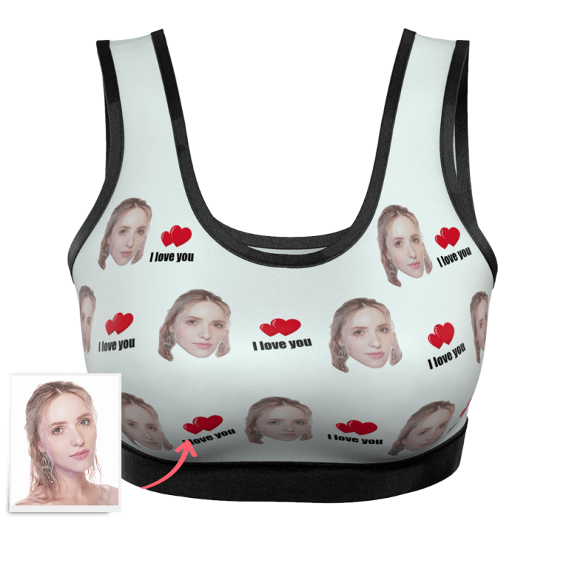 Women's Custom I Love You Face Sports Bra