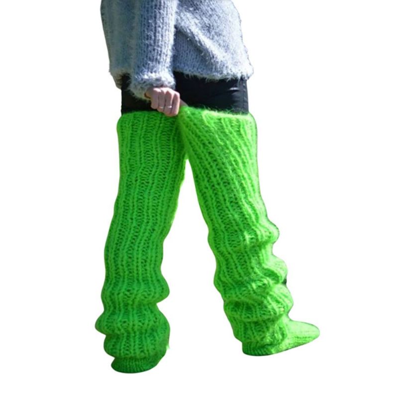 Womens Solid Color Knitted Wool Socks Over The Knee